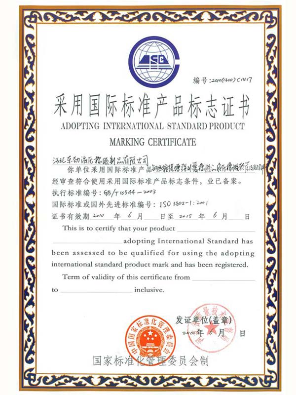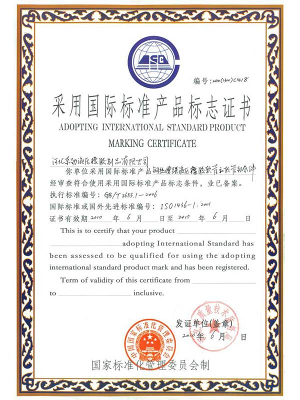 • 鋼編管國際標準產(chǎn)品標志證書